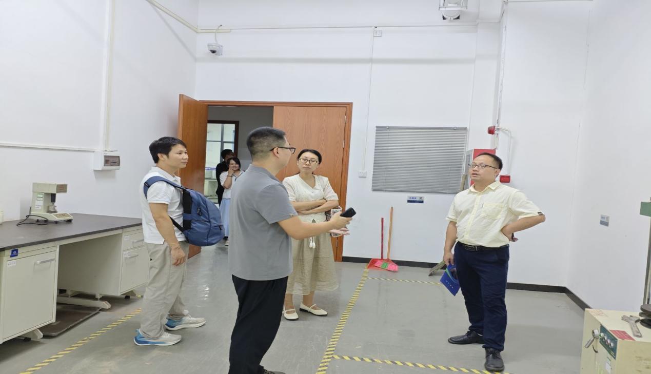 交流团一行在总经理黎超尘及技术负责人何枭的陪同下,先后参观了公司的材料检测实验室、结构健康监测中心及项目指挥调度平台。通过现场演示与细致讲解,老师们详细了解了公司在工程质量检测、新型建筑材料研发、智慧监测技术应用等领域的先进技术与实践成果。双方就行业发展趋势、人才培养需求、科研项目合作等议题展开深入交流。广东建科交通工程质量检测中心有限公司对土木与工程学院多年来输送的优秀人才给予高度评价,认为毕业生专业功底扎实、实践能力突出,已成为公司多个重要项目的骨干力量。