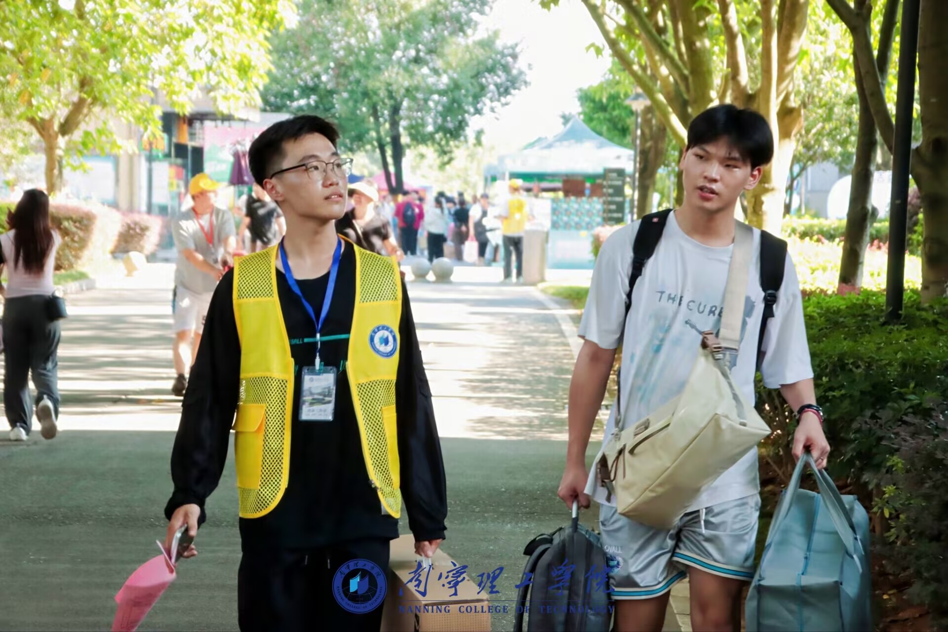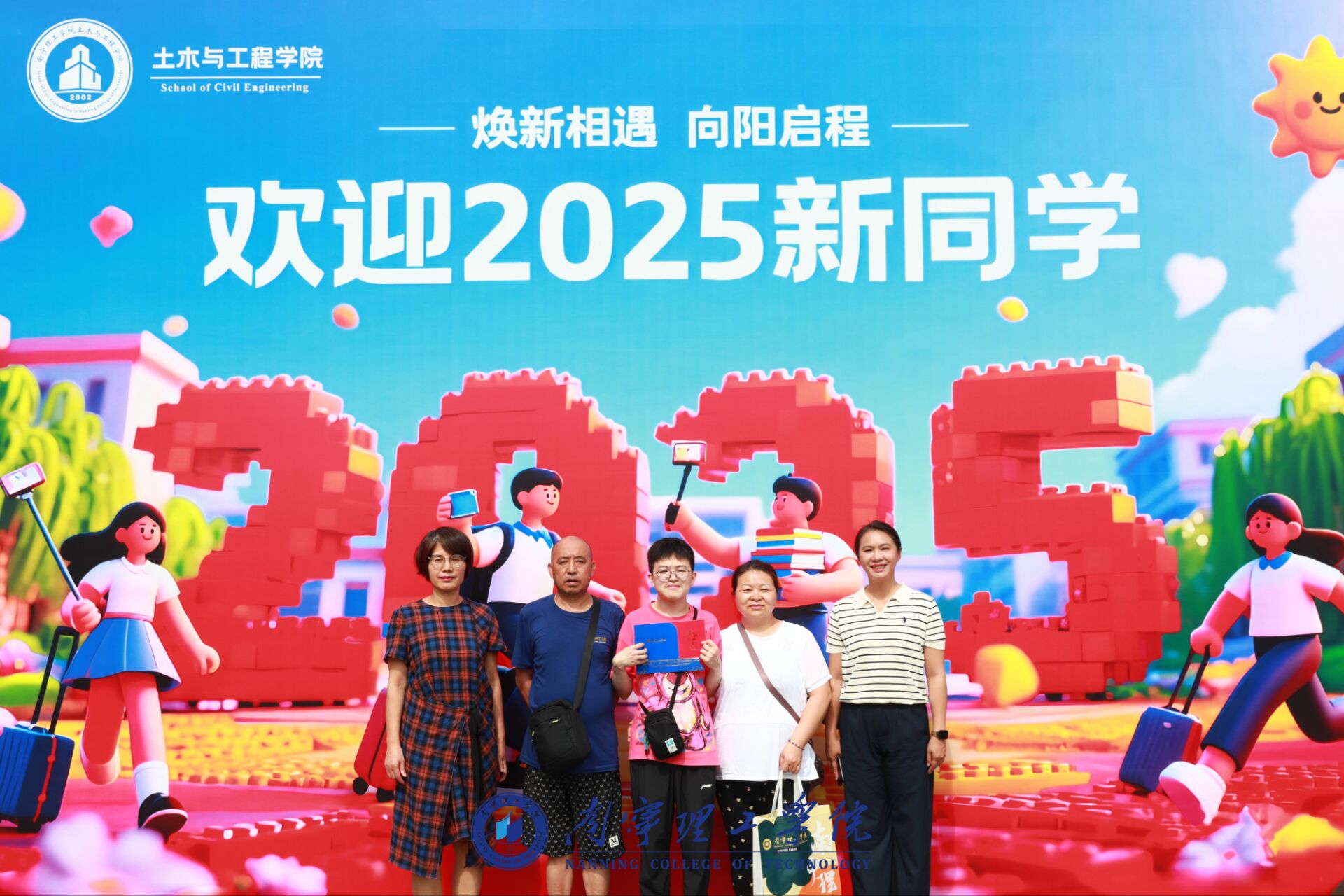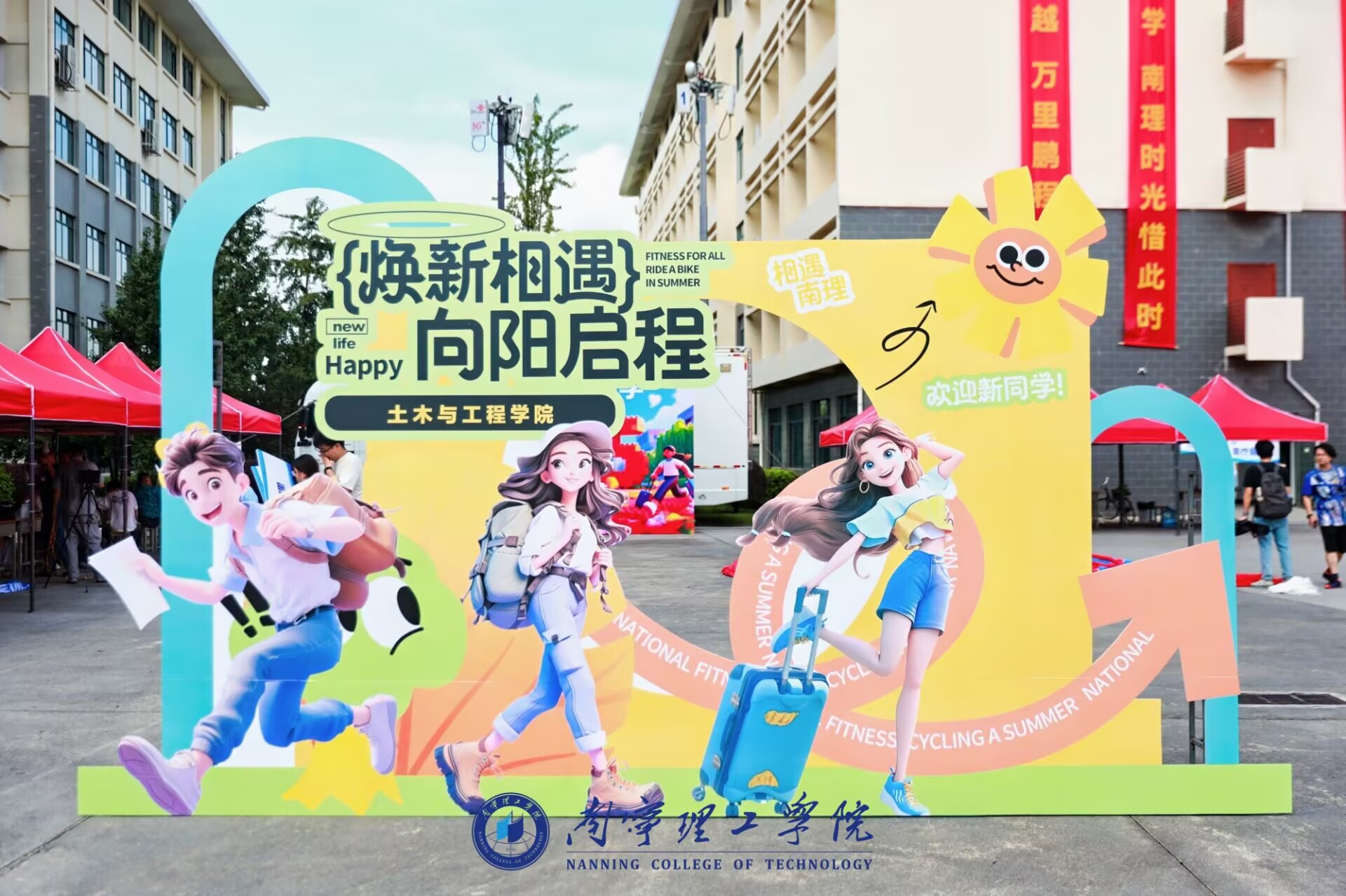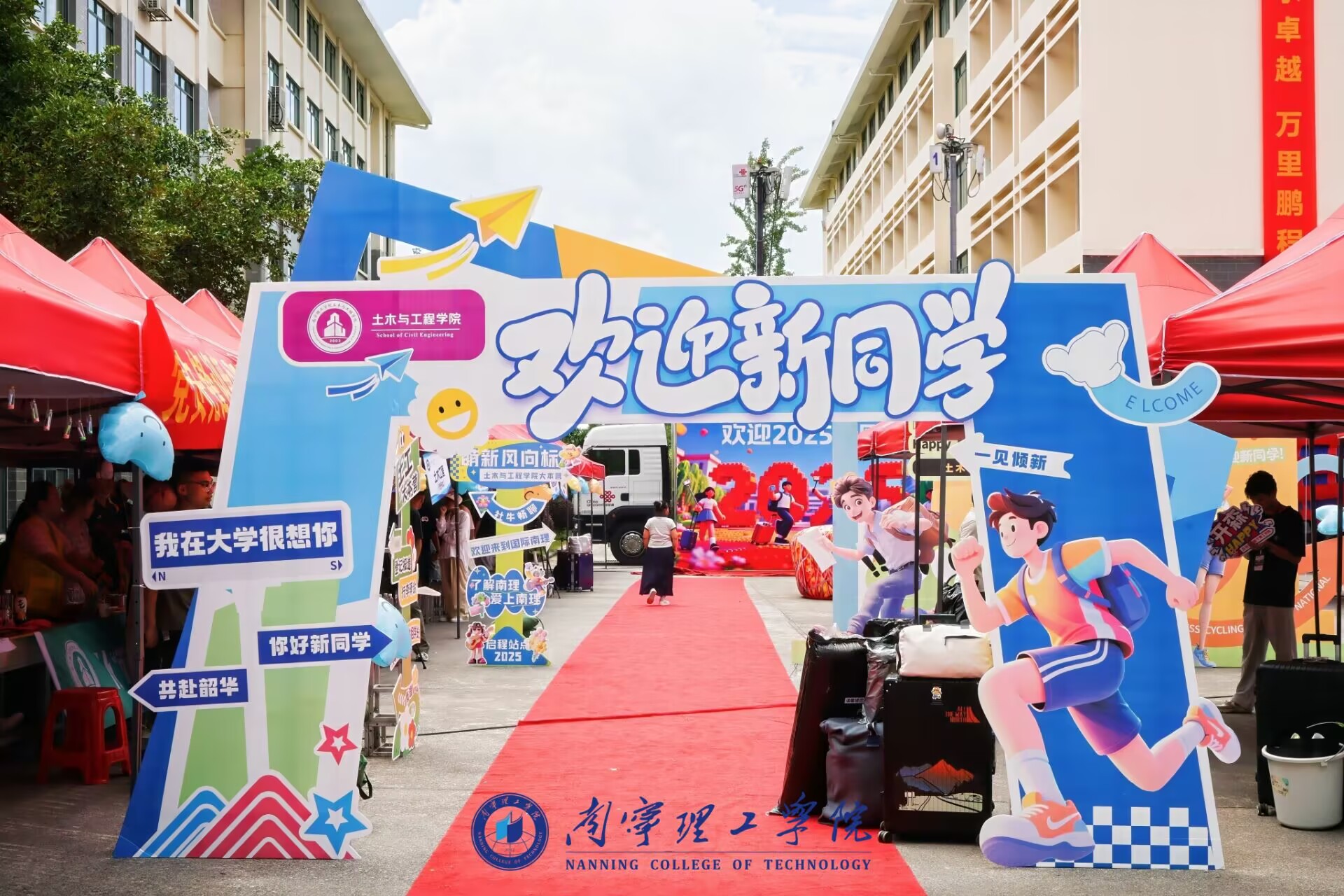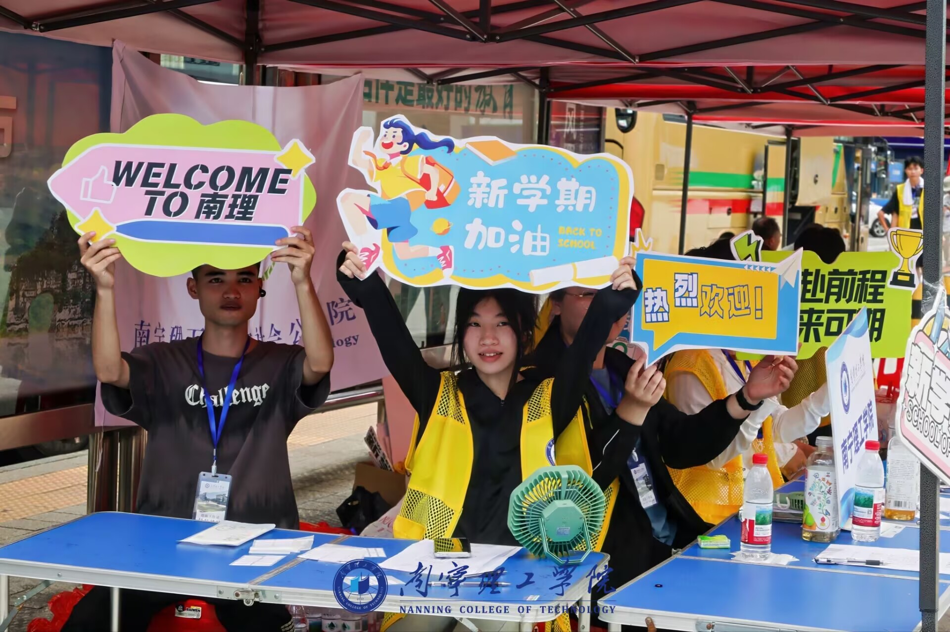 2.氛围布置吸睛:校门口矗立迎新拱门,印着“欢迎2025级新同学”的标语格外醒目;报道区旁设专属拍照打卡点,“我是土工人啦”、“筑梦南理,从这里出发”等手举牌超适合定格青春瞬间;、
