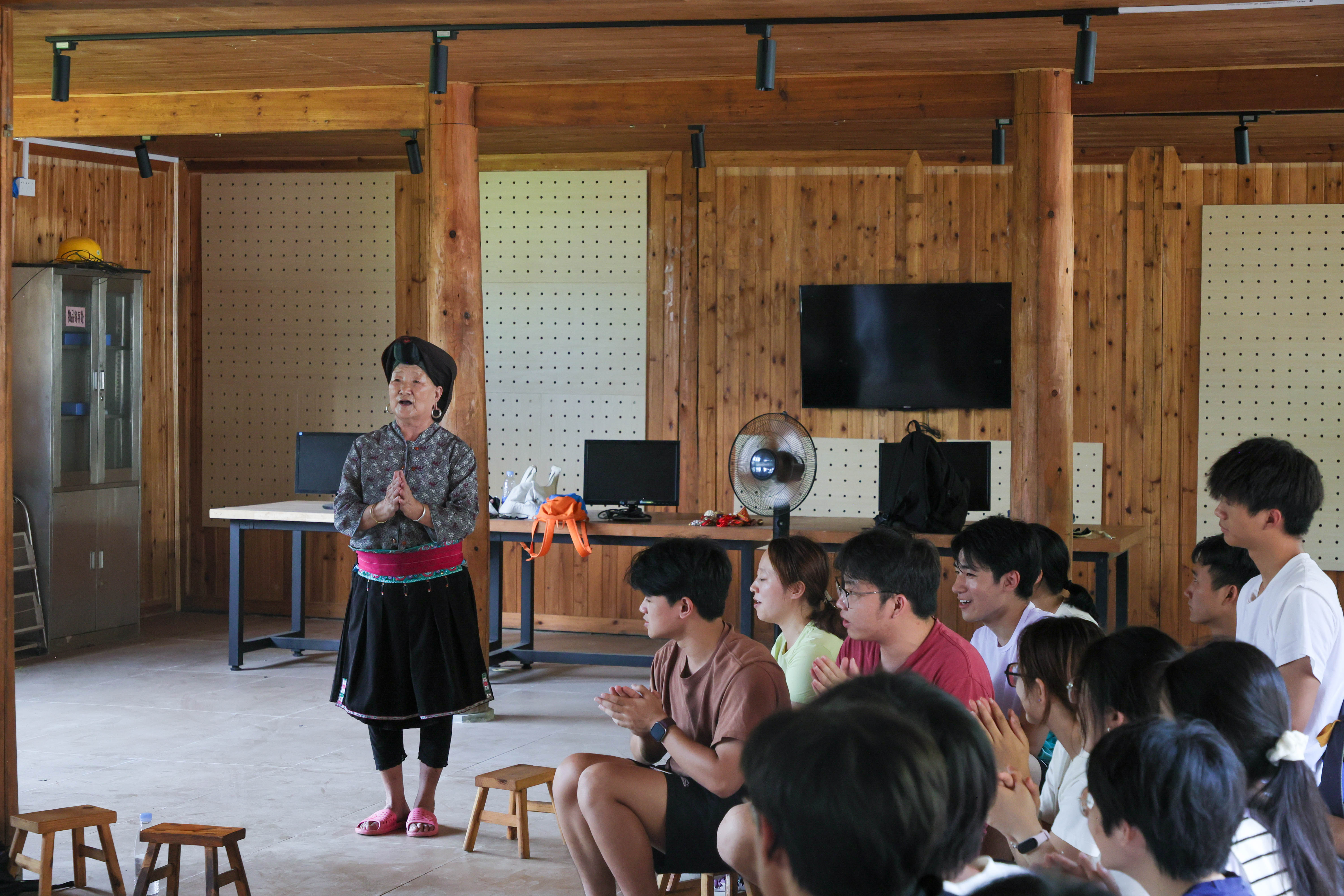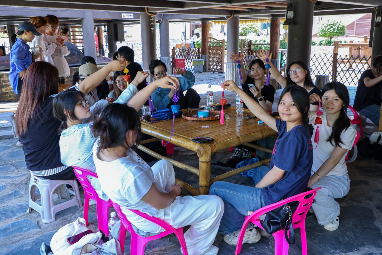 行程延伸至龙胜白面瑶寨。红军岩前,师生们聆听红军纪律严明、尊重瑶胞的往事,深刻认识到党的民族政策在此地首次成功实践的深远意义。瑶寨博物馆内丰富的史料与器物,生动展现了红军长征过境龙胜的壮阔历史与红瑶独特文化。沉浸式的团建活动将研学推向高潮,73岁高龄的瑶族阿婆带领学子们共唱红歌,激昂的歌声在山谷间回荡,诉说着不变的信仰;亲手编织草鞋的体验,让学子们以指尖感触长征路上的艰辛与坚韧,体味“红军不怕远征难”的豪迈气概。