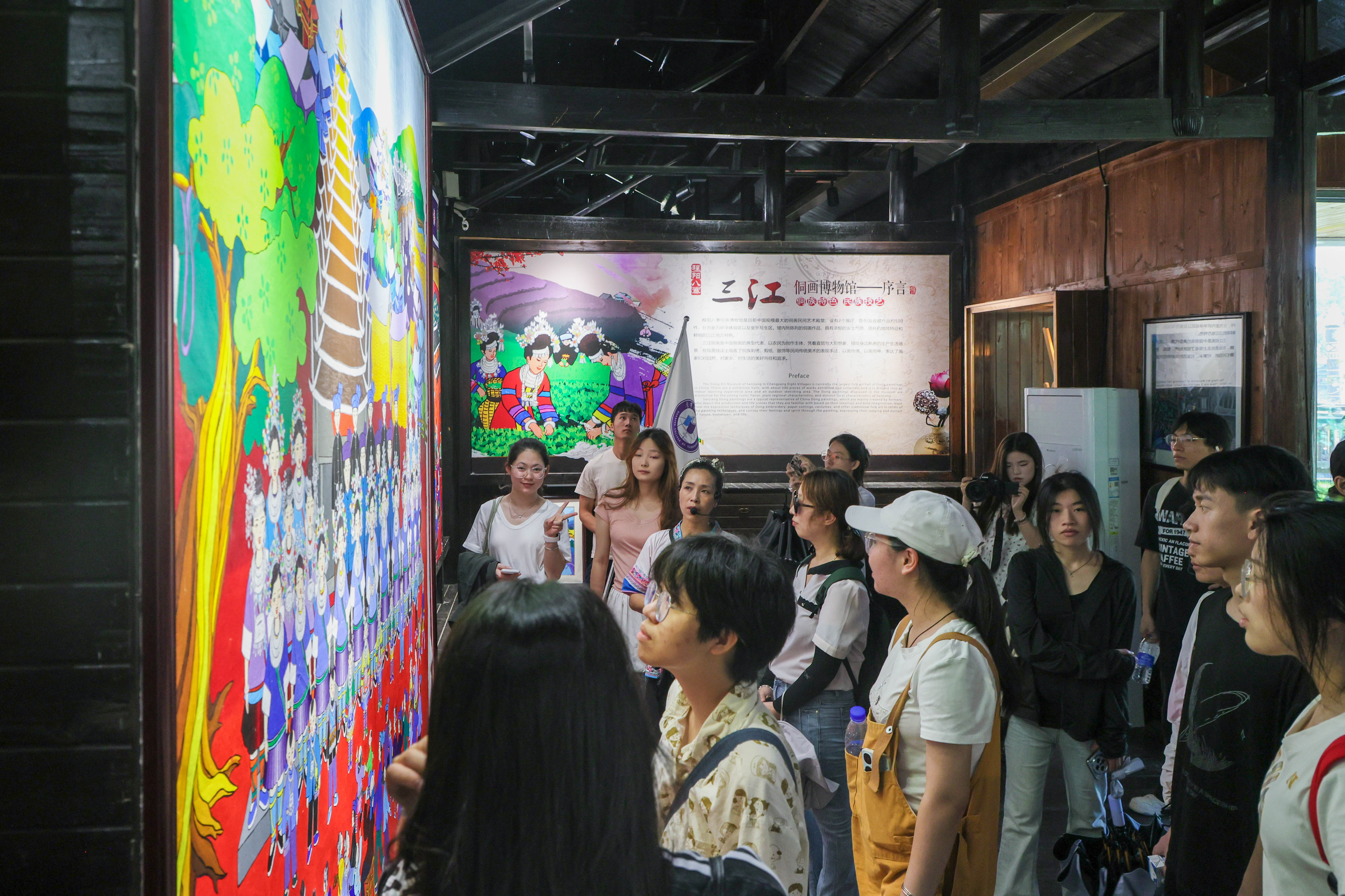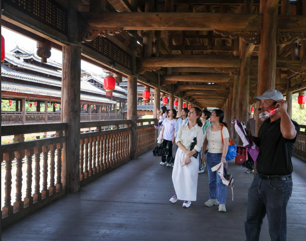 研学首站聚焦三江厚重的民族文化与红色基因。在三江风雨桥与鼓楼的雕梁画栋间,学子们领悟了“没有一颗铁钉却屹立百年”的建筑智慧,更从榫卯结构中读懂了“各民族像石榴籽一样紧紧抱在一起”的深刻内涵。步入程阳八寨红色教育基地,同学们在导游的讲解下不仅了解了多彩的侗族文化,还聆听了一段段感人至深的党史故事,革命先辈的英勇事迹让学子们肃然起敬。踏上林溪镇科马界红军路,步履坚定地追随着革命先辈们的脚步,每一步都仿佛在与历史对话,让长征精神在年轻的心中激荡出深沉回响。
