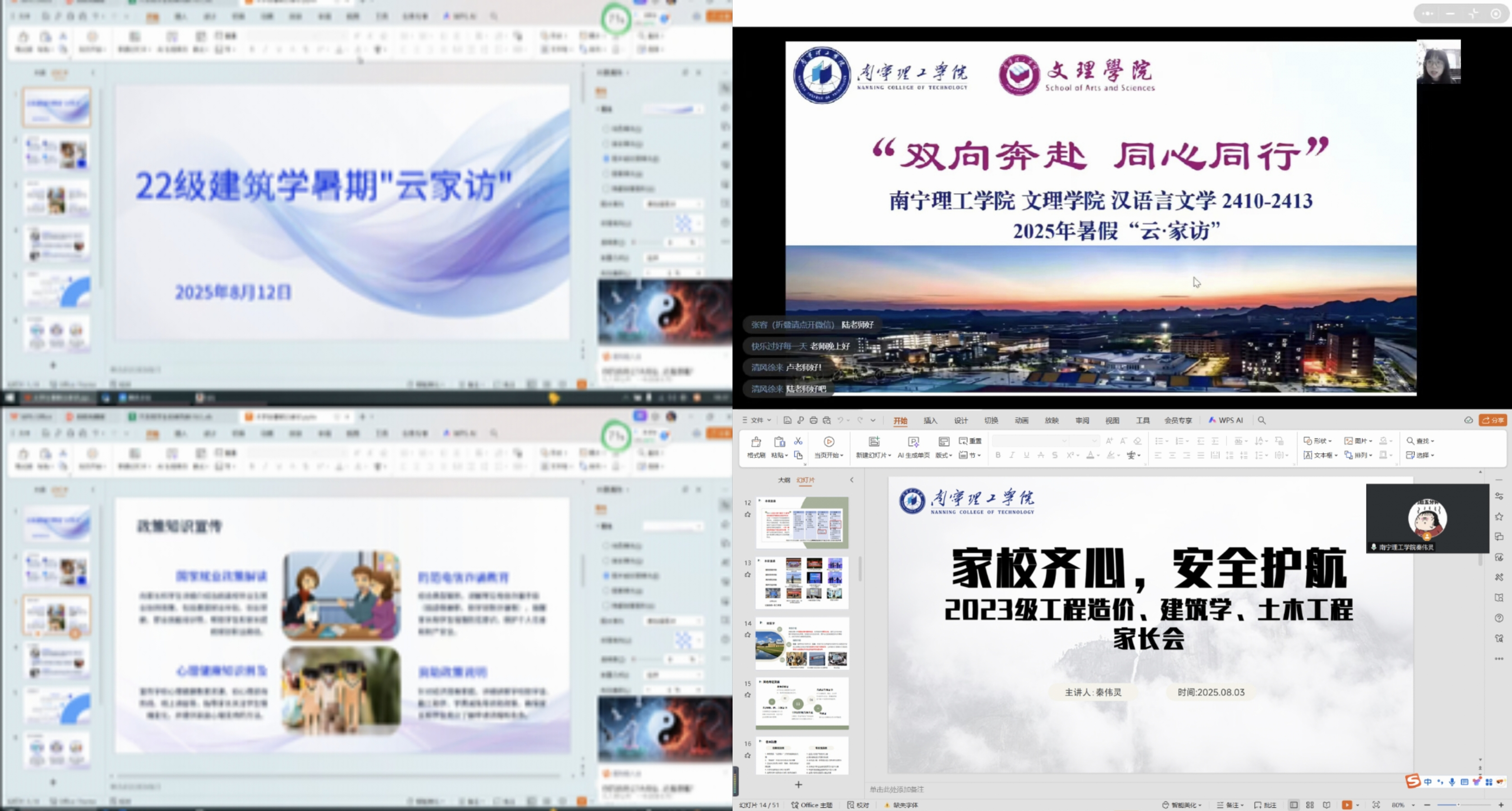 为深入贯彻落实立德树人根本任务,持续推动家校协同育人向纵深发展,进一步凝聚育人合力、提升育人实效,我校学生工作部(处)联合各二级学院于2025年暑期全面开启“云·家访”系列活动,覆盖全校学生,以数字赋能传统家访,以云端联通家校心声,切实将“三全育人”理念贯穿学生成长全过程、各环节。