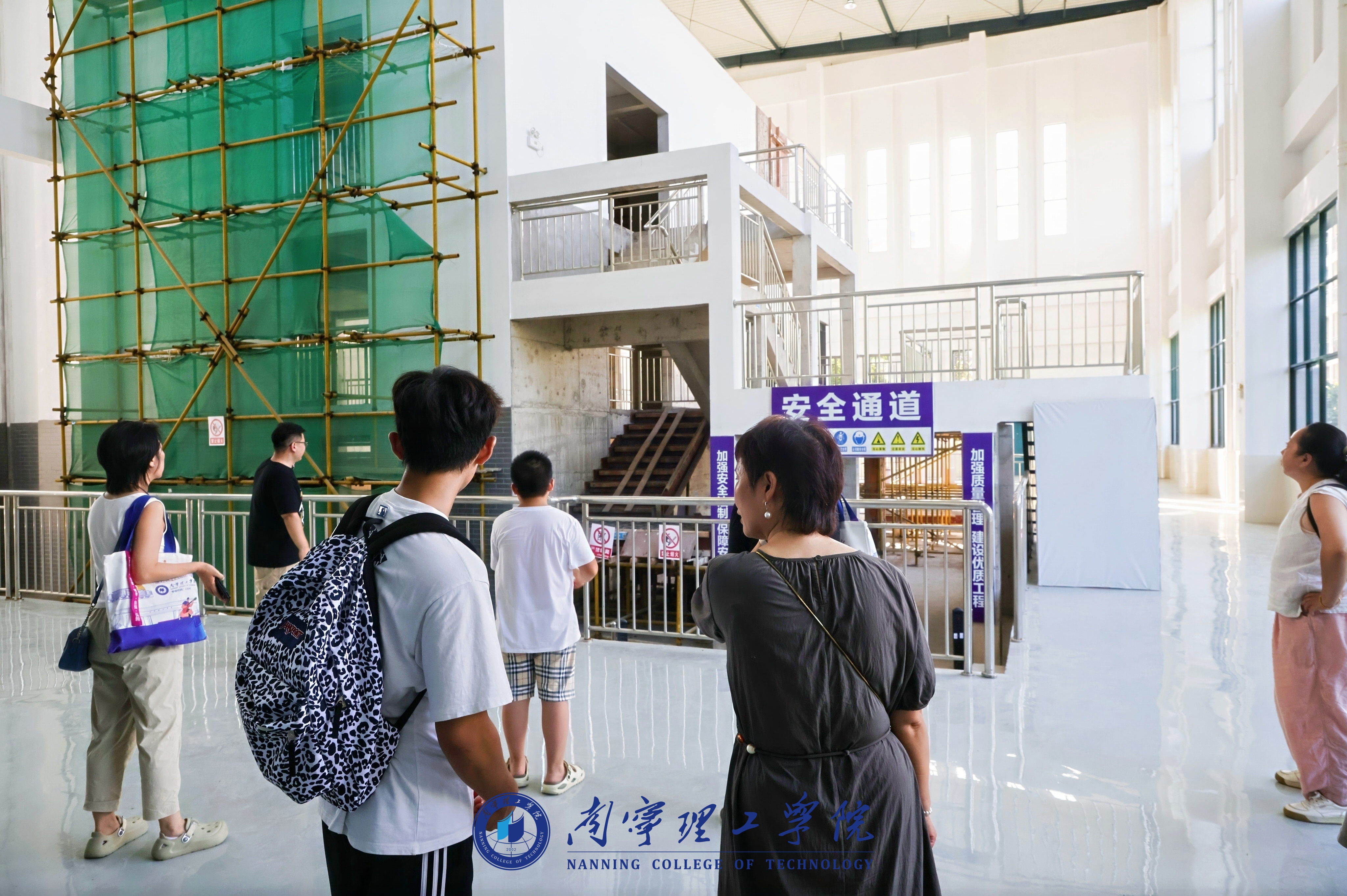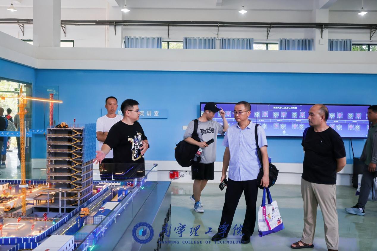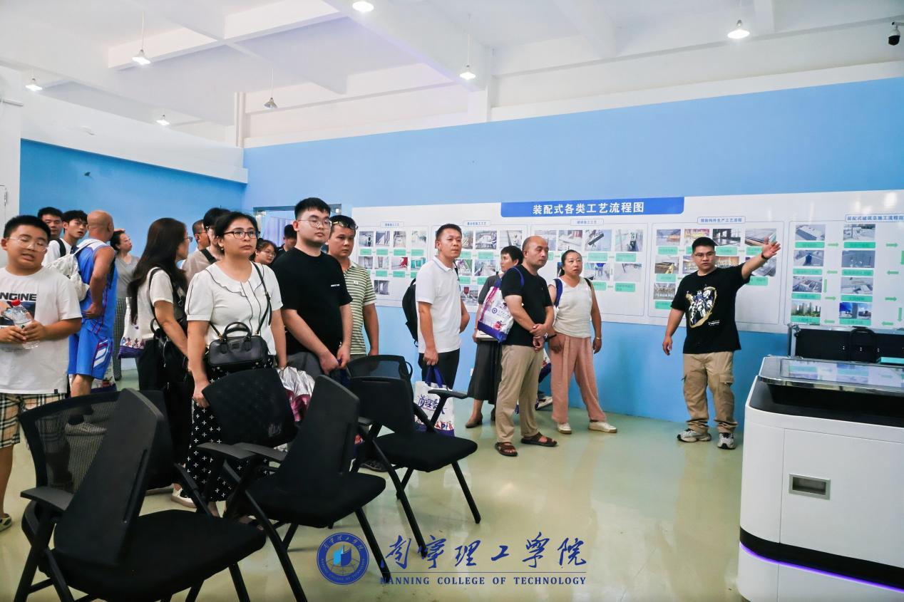 在学院党总支书记秦磊等领导及各教研室主任带领下,新生与家长分批进入实训基地核心区。BIM技术应用中心内,多屏联动的智慧工地模拟系统动态演示深基坑施工全流程,暴雨排水、塔吊安全预警等场景实时切换。广西桂林家长李先生拍下系统界面:“回去给孩子存着,让他明确大学努力方向。”移步模拟建筑工程实施实训场,各类工程构件、用具整齐排列。“传统施工靠经验,装配式建筑靠标准,这里完全复刻企业生产线,新生能亲手操作构件吊装、钢筋连接等核心工序。”家长们围着设备拍照,感慨道:“以前以为土木是‘搬砖画图’,如今才知背后需扎实技术与科研支撑。”