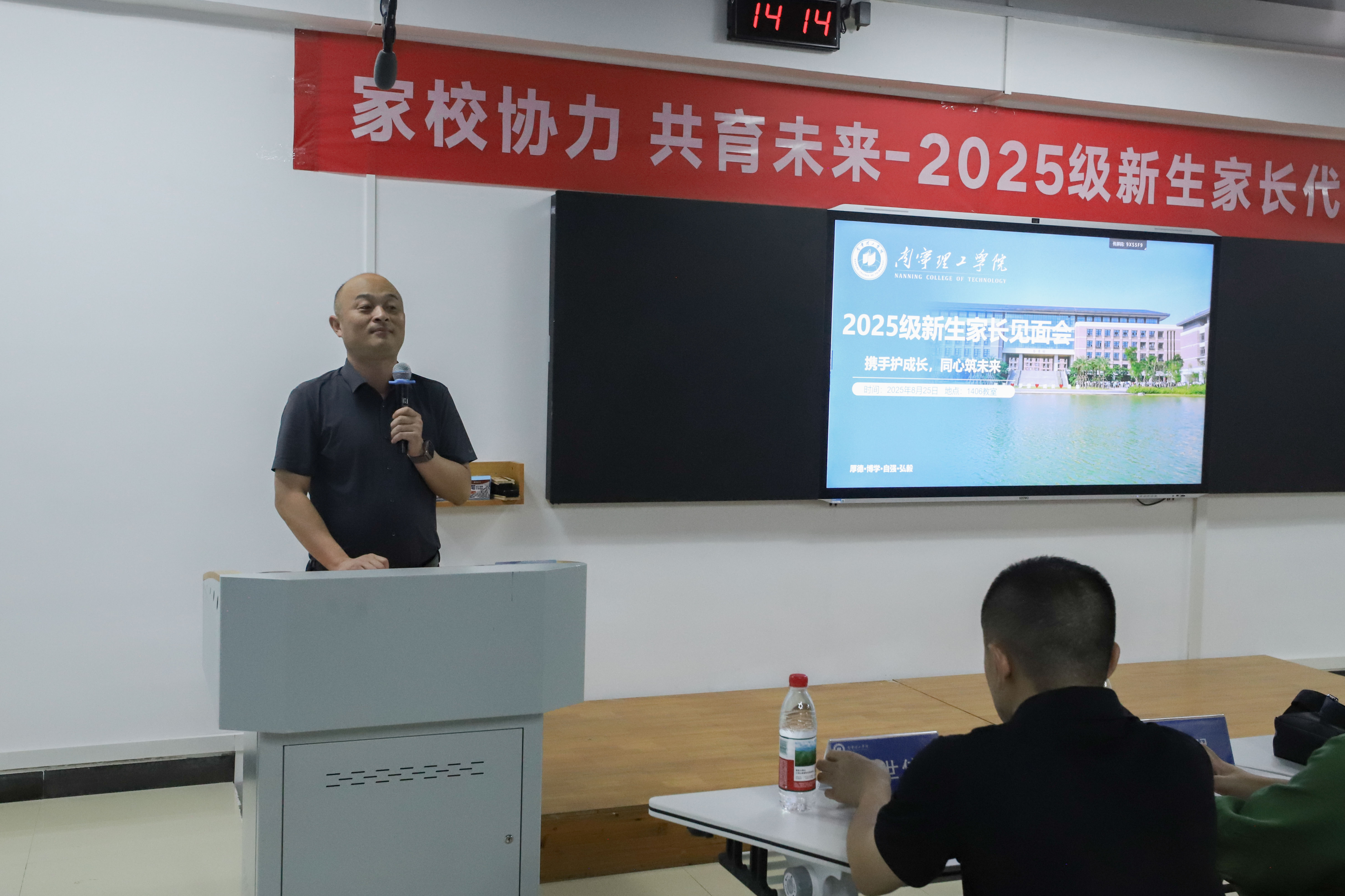 除了学业指导,学子的思想成长与身心健康同样是家校关注的重点。信息工程学院党总支书记王帅聚焦“立德树人”根本任务,详细介绍了学院在学生管理、思政教育、服务保障等方面的工作安排。从日常思想引领、心理健康疏导,到校园安全保障、生活服务支持,王帅书记的分享全方位展现了学院“以生为本”的育人温度,让家长们深刻感受到学院对学生的细致关怀,也为孩子在校生活吃下“定心丸”。