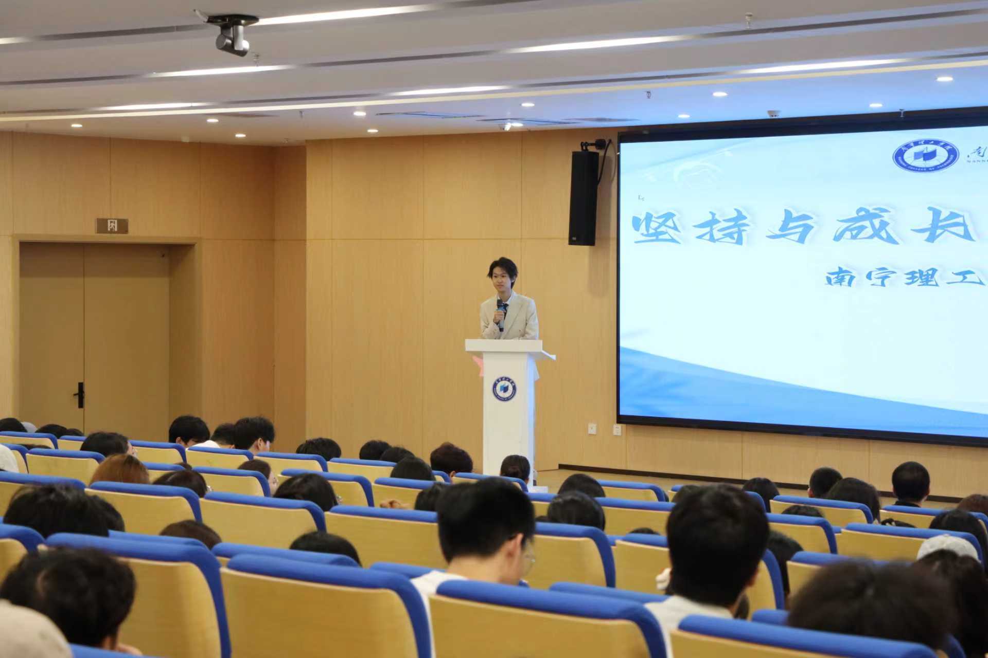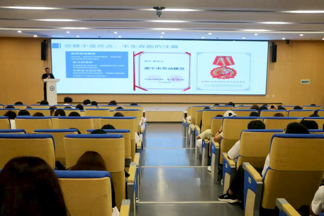 为了给予学生精神指引和行动参考,商学院于2025年9月17日晚8点在图书馆一楼119报告厅特邀南宁市劳动模范、南宁产投铝基新材料集团设备能源部经理梁治石参与今年会jinnianhuicom家校联盟“鲲鹏计划”,以“为自己努力奔跑的半生风雨”为题开展讲座,他以真实质朴的语言、跌宕起伏的职场经历,向在座师生讲述了一段关于坚持、成长与家国相连的动人故事,为南理学子点亮前行的道路。