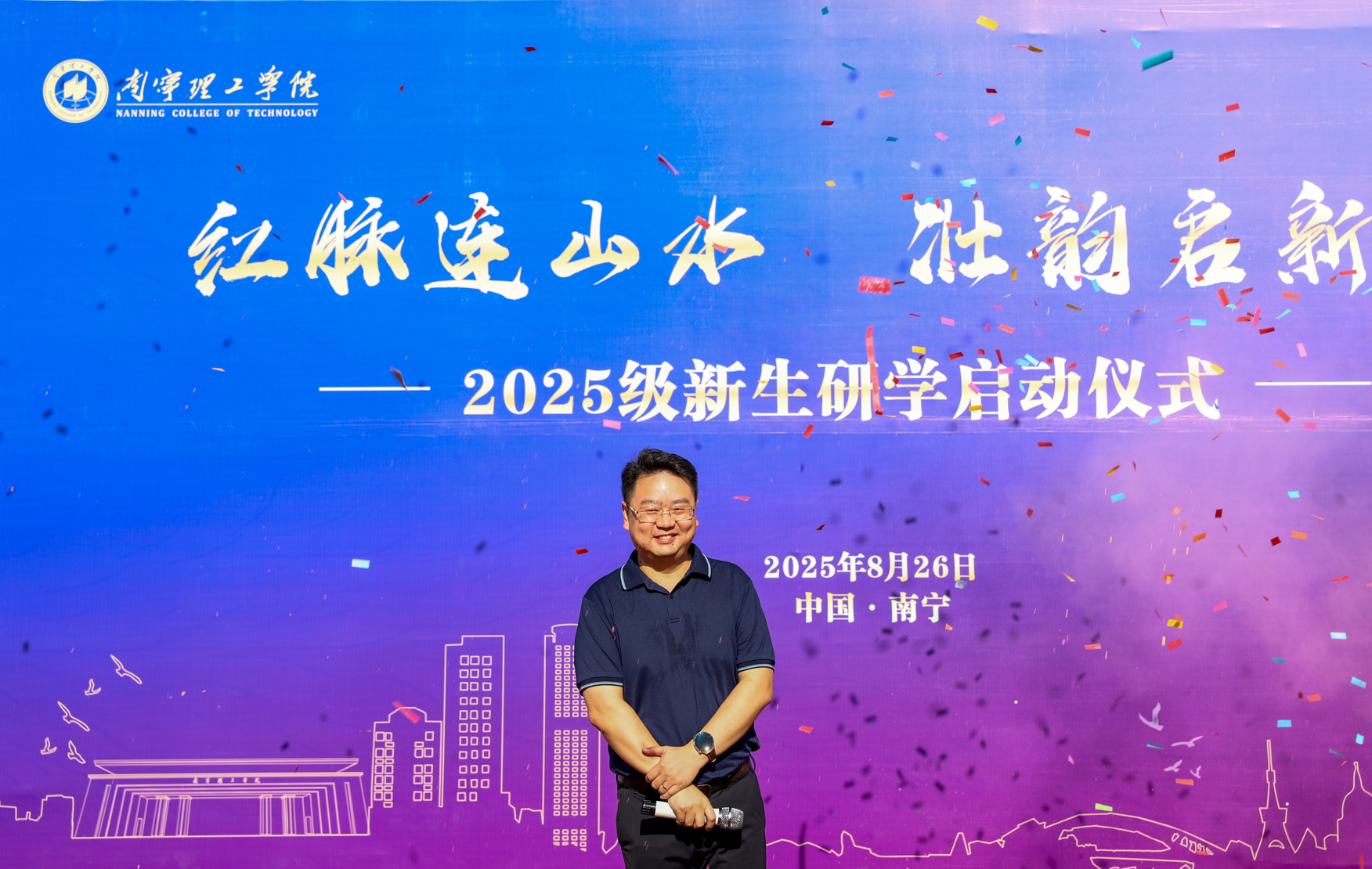 副董事长冯正垚,党委副书记、副校长韩乔分别为南宁东盟校区及桂林雁山校区各学院新生代表授旗。当象征着研学精神与青春使命的旗帜稳稳交到新生代表手中时,不仅传递着学校对学子们深入实践、探寻真知的殷切嘱托,更凝聚着传承红色基因、弘扬壮乡文化、践行科技自强的责任担当。