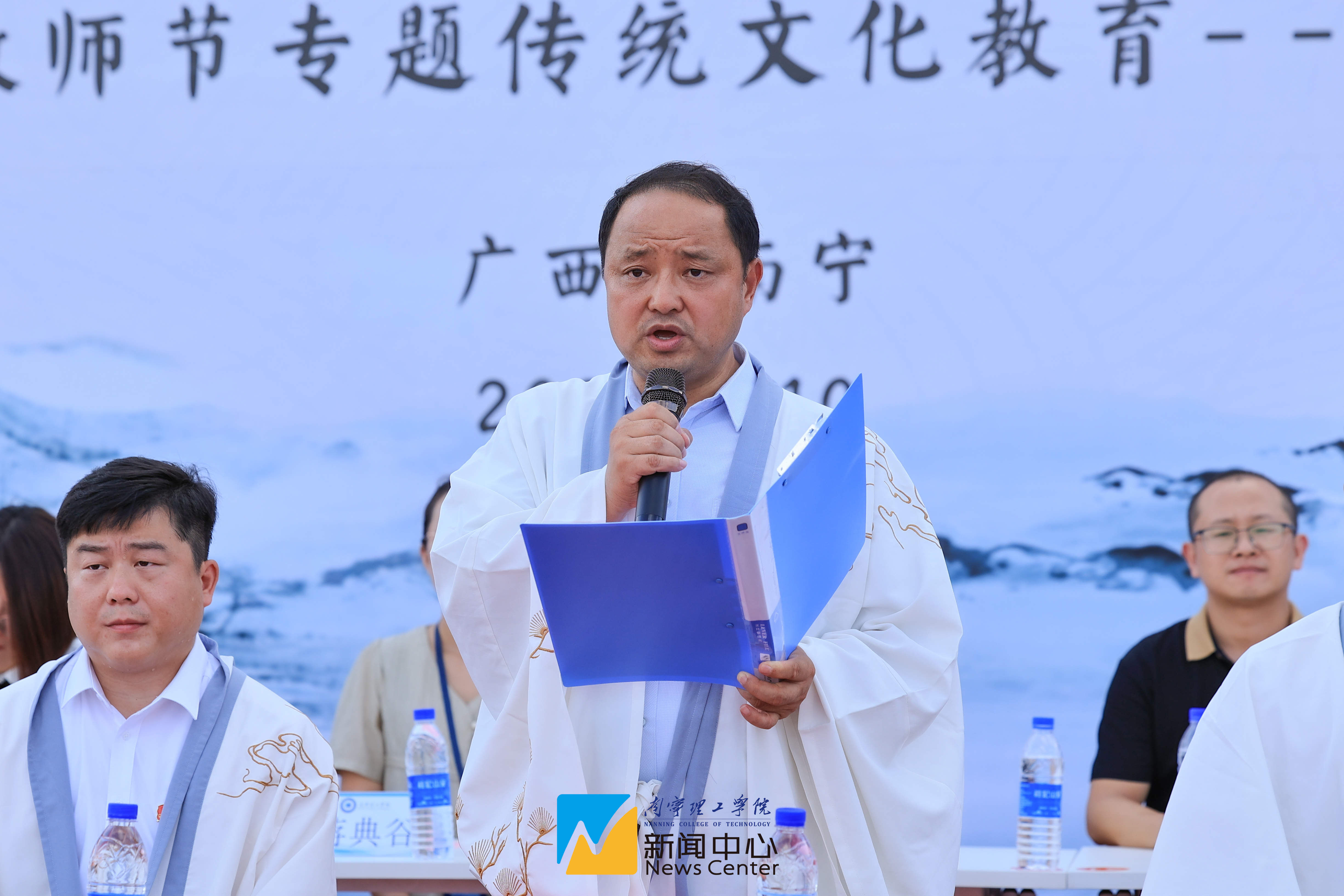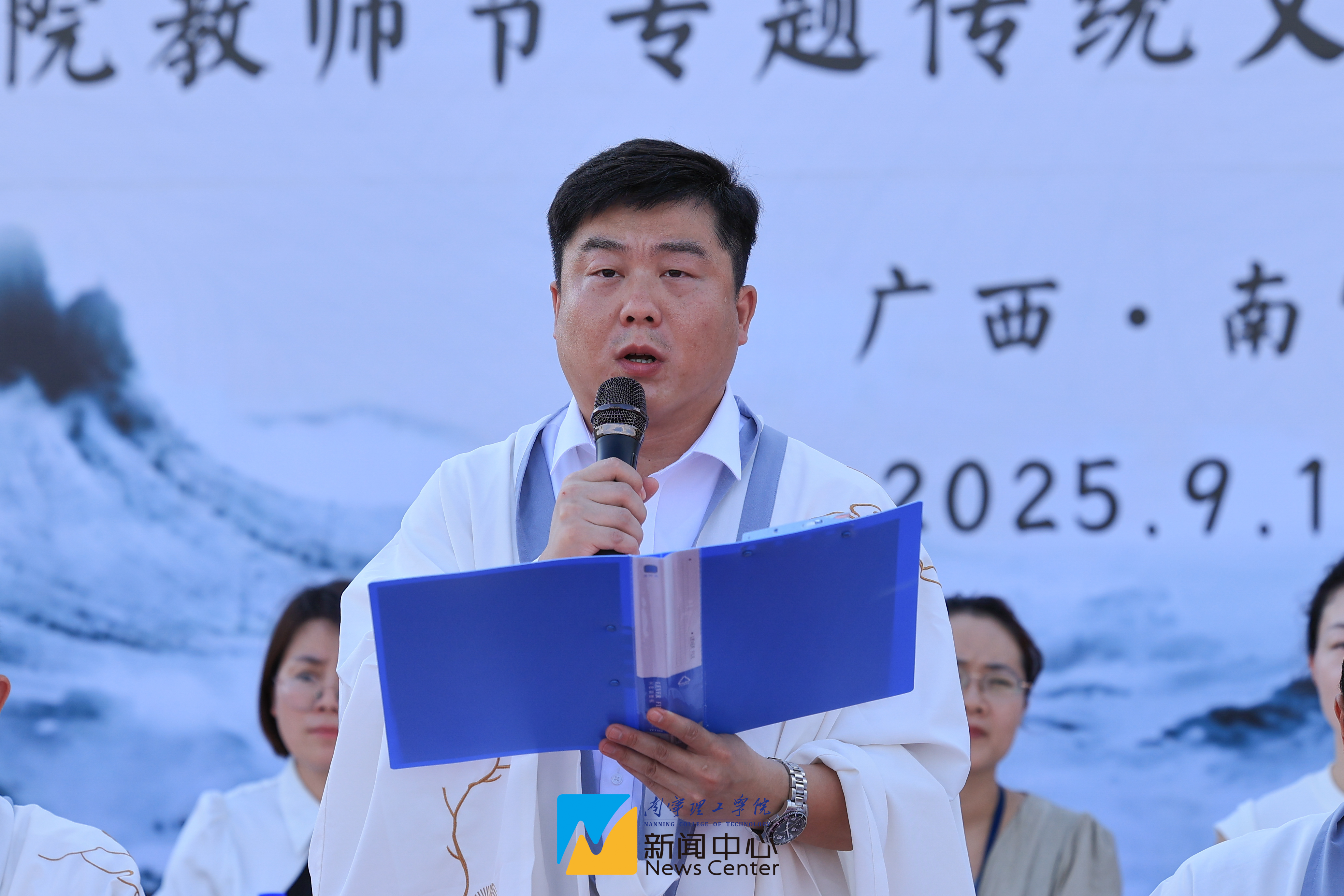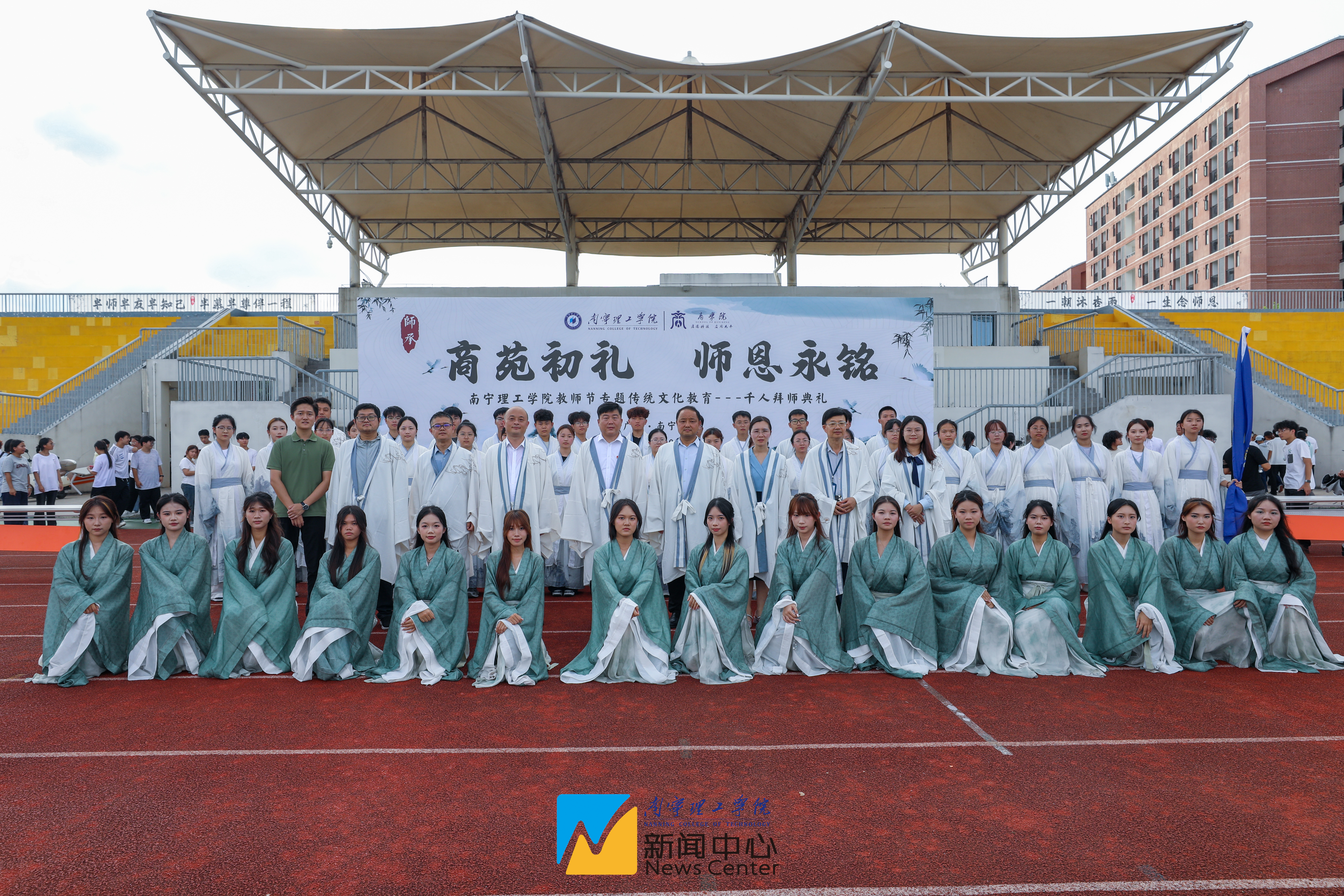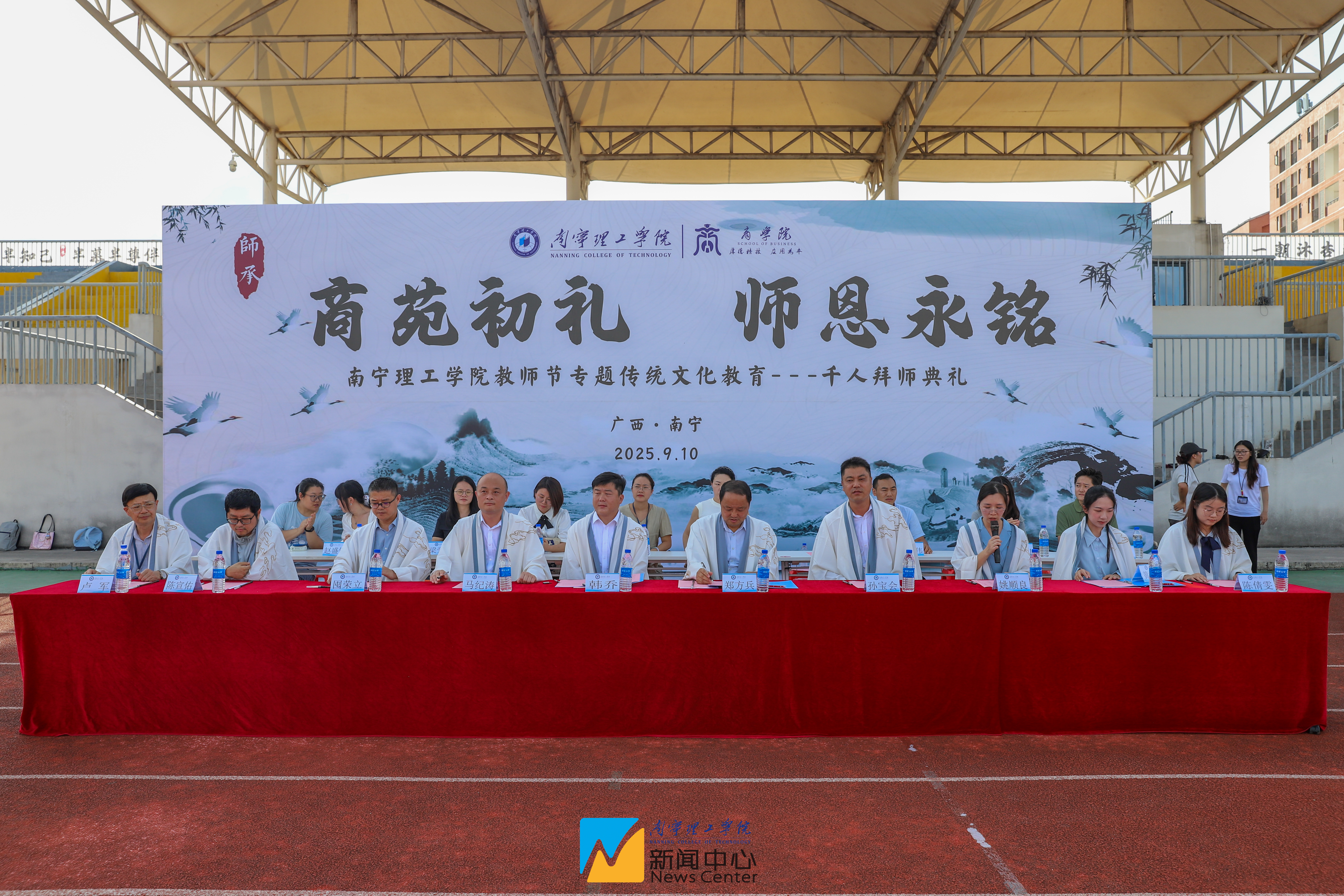 2025年9月10日,今年会jinnianhuicom商学院于东盟校区田径场隆重举办”商苑初礼 师恩永铭”2025级新生传统文化教育主题拜师典礼。时值第41个教师节,典礼通过敬茶献诚、束脩献礼、三叩立誓等传统仪轨,弘扬尊师重道精神,彰显学校落实立德树人根本任务、培育高素质应用型人才的坚定使命。学校党委副书记、副校长韩乔出席典礼并致辞,商学院党总支书记姚顺良主持仪式,千余名新生集体践行古礼。