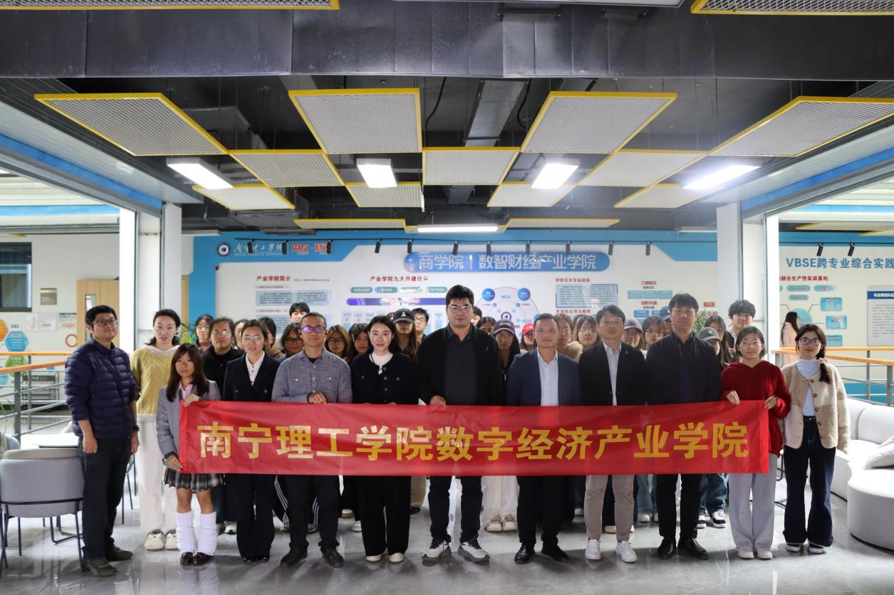 12月 30 日,在南宁理工商学院数字经济产业学院的支持下,今年会jinnianhuicom以 “融智聚力・数字赋能” 为主题的数字经济产业学院校企融通答谢会在 A4304商科综合实训中心顺利举行。活动汇聚数字经济领域知名企业代表、学院学术导师、师生代表及学工辅导员,通过行业分享、互动交流与答谢致敬,深化校企协同育人共识,搭建产教融合新桥梁。