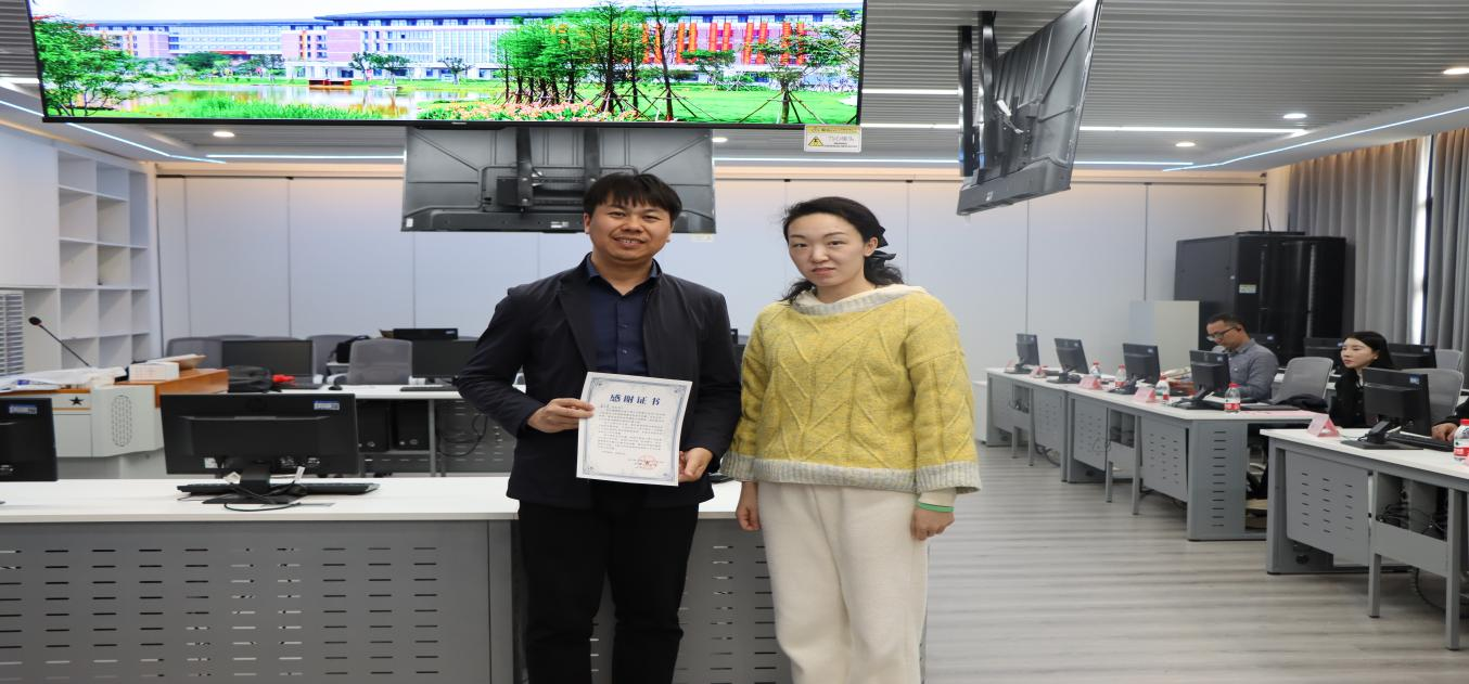 (图 工商管理教研室彭晓琼主任为企业颁发感谢证书)