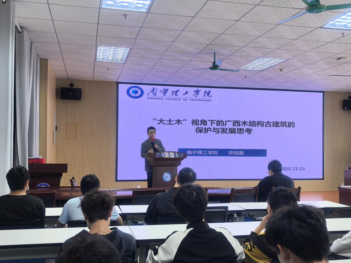 近日,我校土木与工程学院工程管理教研室陈链鑫老师应广西职业师范学院邀请,到土木建筑工程学院开展题为《‘大土木’视角下的广西木结构古建筑的保护与发展思考》的专题讲座。此次讲座旨在通过深入探讨广西木结构古建筑的独特价值与保护现状,为古建筑的保护与发展提供新的思路与方法。