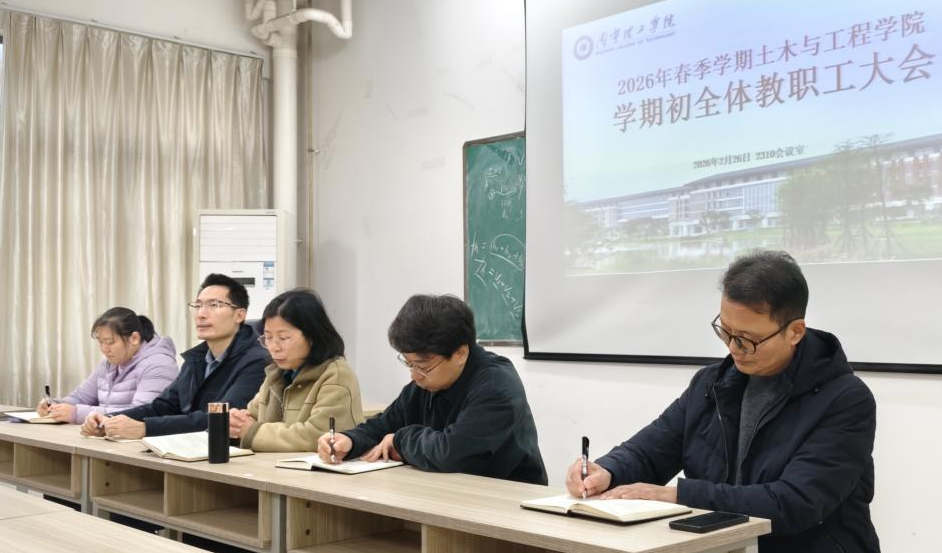 2026年2月26日,土木与工程学院在2310教室召开2026年春季学期全体教职工大会。全体教职工参加会议,围绕传达上级精神、部署年度重点工作、推动学院高质量发展展开深入研讨。