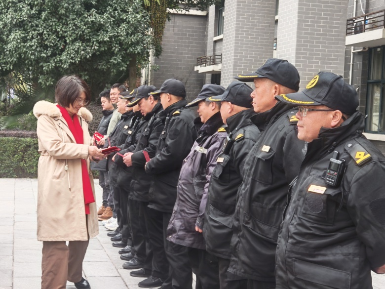 校领导首先代表学校对春节期间坚守工作岗位的后保一线员工表示由衷的感谢,并致以新春的问候和祝福;并强调,学校后保工作是校园正常运转的重要保障,是学校建设发展的重要支撑,后保部门要履职尽责,切实做好寒假及春节期间后勤服务保障工作。同时,叮嘱他们要继续加强值班执勤,做好学校安全保卫和后勤保障工作,确保春节、寒假期间校园安全稳定和正常运转。