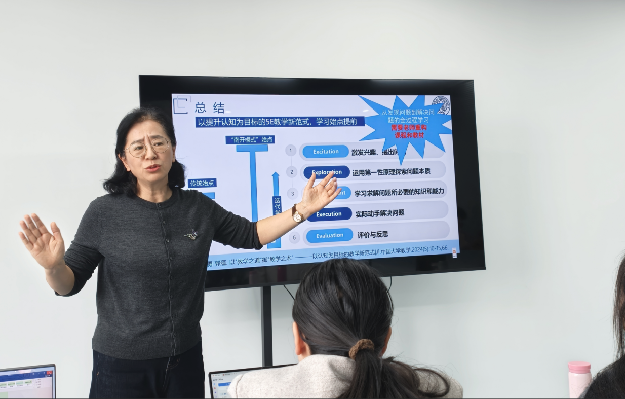 培训期间,教师们在理论学习中厘清AI与教学融合的底层逻辑,在课堂互动中碰撞教学创新思路。大家围绕学科教学中的实际问题,运用苏格拉底式提问法与第一性原理思维,完成了教学方案重构与展示,在与同行的交流探讨中进一步拓宽了教学视野。通过两天的系统学习,我校教师系统把握了 “Excitation(激发兴趣、提出问题)、Exploration(探索本质、形成方案)、Enhancement(学习知识、提升能力)、Execution(动手实践、解决问题)、Evaluation(评价反思、迭代优化)”的“5E”教学全流程,对“教师是编剧导演、学生是主演、AI是伙伴”的教学新模式有了更深刻的理解。