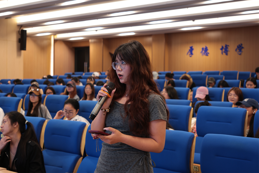在互动环节中,现场气氛活跃,同学们结合自身学习困惑与未来发展踊跃提问。大家围绕基层幼儿园工作日常、幼儿教师职业素养提升、西部基层就业政策与发展前景等问题积极举手发言。面对大家的提问,林秋学姐结合自身经历,逐一耐心细致的为同学们解答。她鼓励大家勇于尝试、脚踏实地,在不断积累中自我突破。
