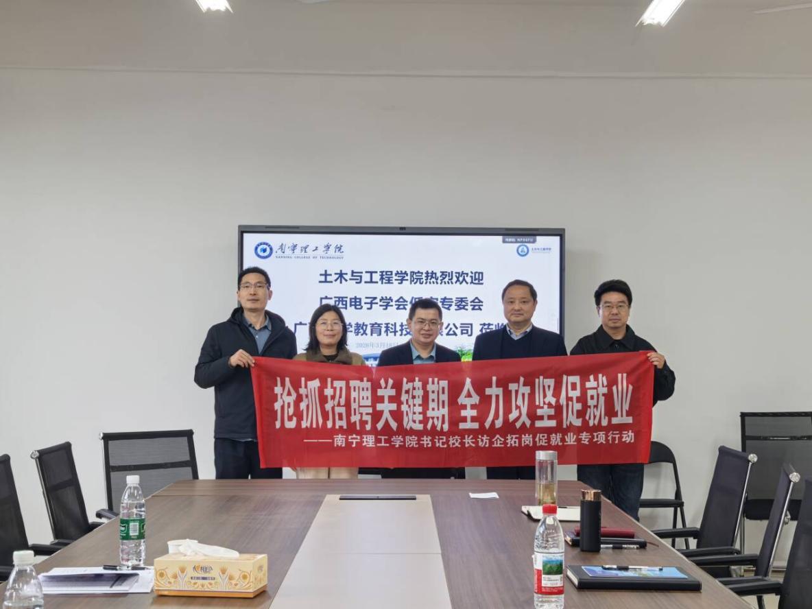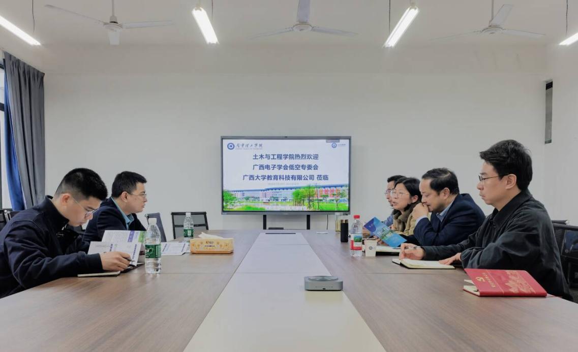 3月18日上午,广西电子学会低空经济专业委员会、广西大学教育科技有限公司领导一行莅临土木与工程学院开展交流座谈。学校校长助理郑方兵,土木与工程学院院长鲁金金、党总支书记秦磊、副院长尹登科及就业负责人刘鹏飞出席座谈会。