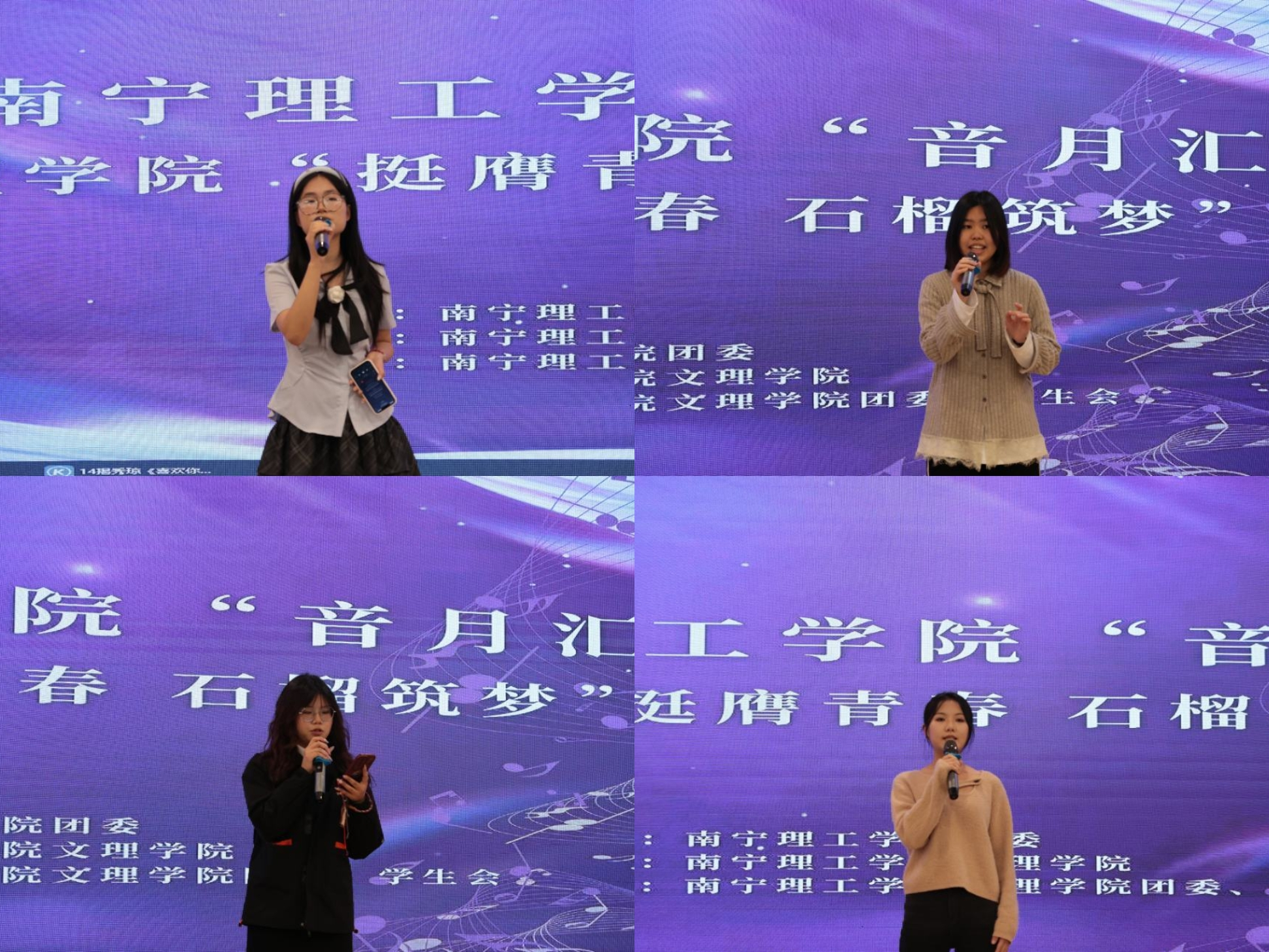 此次“挺膺青春,石榴筑梦”歌唱大赛,不仅是南理学子展示才艺、释放活力的重要平台,更是学校落实美育教育、铸牢中华民族共同体意识的生动实践。赛事以音乐为纽带,巧妙地将青春成长与民族团结理念相结合,让不同学院、不同专业的学子齐聚一堂,在歌声中增进交流、凝聚情感,以青春之声传递同心筑梦的正能量。此次活动不仅为校园文化建设注入了鲜活活力,更激励着广大青年学子以昂扬姿态践行青春使命。学校也将继续打造更多优质文化活动,助力学子们在青春赛道上奋勇争先,书写更加精彩的校园文化新篇章。