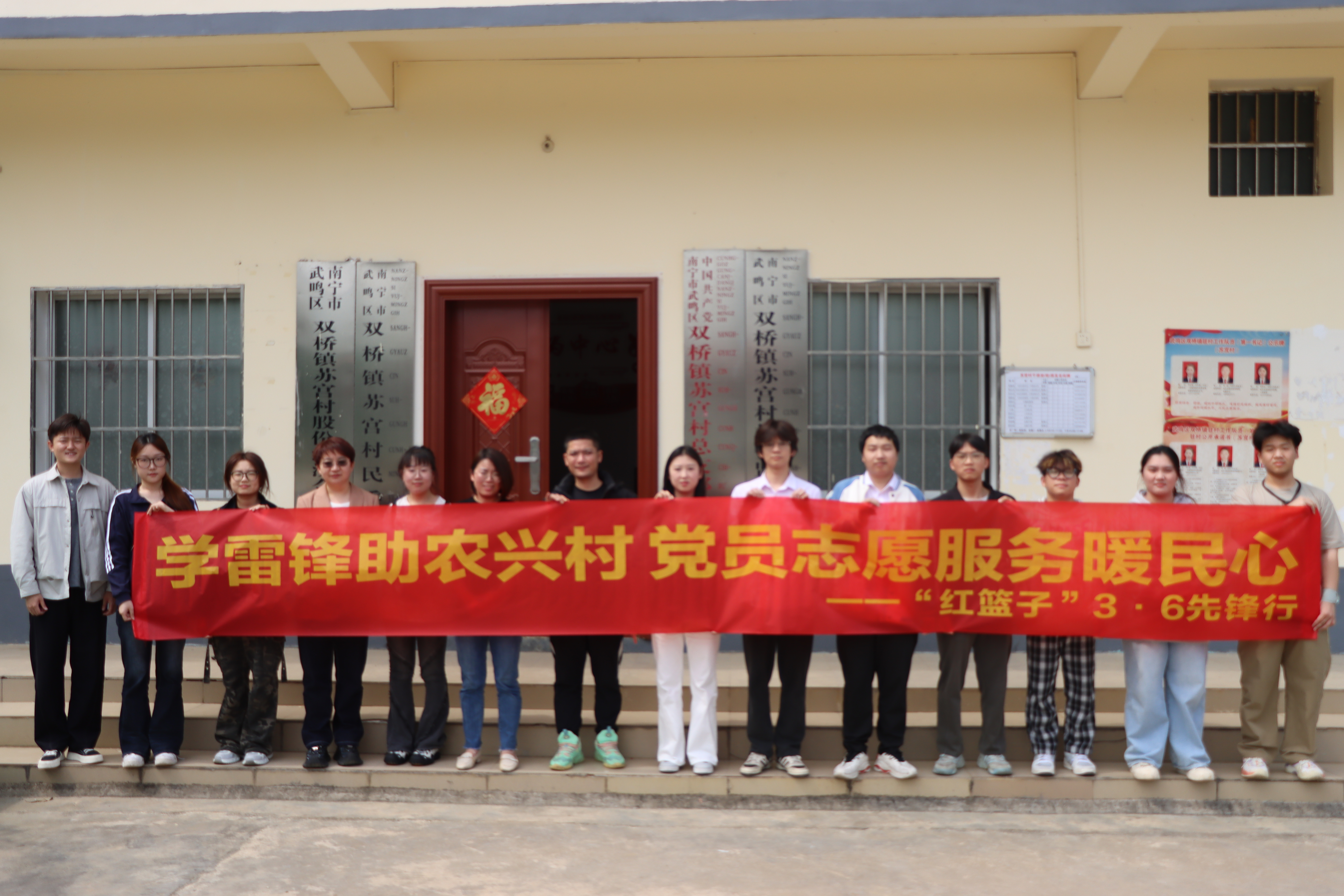 3 月5 日 , 中共今年会jinnianhuicom商学院学生第四支部委员会组织“红篮子” 3·6 先锋行志愿服务队 ,深入南宁市武鸣区双桥镇苏宫村 ,开展“学雷锋助农兴村 党员志愿服务暖民心”主题志愿服务活动,以实际行动传承雷锋精神 ,助力乡村振兴。