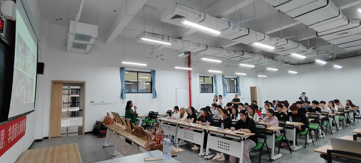 活动开始,曹文碧老师为同学们详细讲解点米成画这一非遗技艺的深厚底蕴与制作精髓。曹老师从点米成画的历史渊源、文化内涵讲起,细致介绍这项技艺以大米、小米、豆类等五谷为原料,经过筛选、染色、排版、粘贴等多道工序,将平凡谷物化作精美画作的独特之处。她还现场展示了多幅经典点米成画作品,生动讲解了每幅作品的创作方法与工艺细节,让同学们直观感受到非遗技艺的精巧与匠心,大家听得全神贯注,纷纷被五谷作画的神奇魅力所折服。