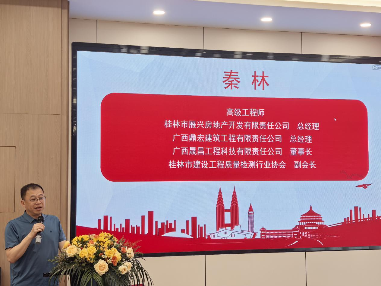 桂林市雁兴房地产开发有限责任公司总经理秦林,以施工现场管理、流程及人才培养为主题,结合房地产项目全生命周期的施工管理实践,分享了施工现场的流程管控要点、一线岗位的能力需求,以及对高校土木工程专业人才培养的针对性建议;